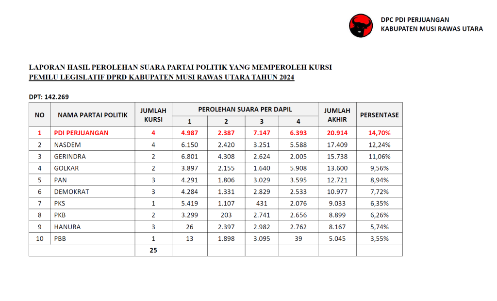 Badan Saksi Pemilu NasionalSatu Suara Sangat Berharga, Kami Kawal Hingga Tuntas." atau "Benteng Pertahanan Suara PDI Perjuangan Sumatera Selatan.